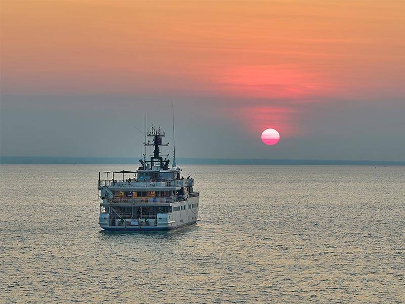 Life onboard befits being on your own elegant yacht. Enjoy stylish surroundings, thoughtful inclusions, friendly yet unobtrusive service, and cuisine designed by Serge Dansereau to satisfy your well-earned appetite, along with inclusive fine wines – champagne and Australian classics – a fine range of spirits and refreshing beers. Your accommodation presents with all the quality furnishings and toiletries you expect, while you have both outside or inside dining options, and plenty of comfortable areas to relax with new found friends to observe the wondrous land and seascapes. Sunsets have never looked better.